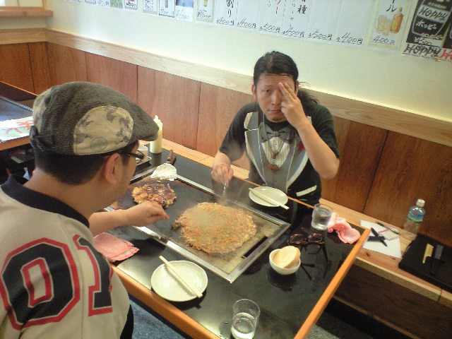 徒歩8秒(笑)の「つばめ屋」でお好み焼き&もんじゃ焼きをご馳走係。 弥次喜多にも負けねぇ