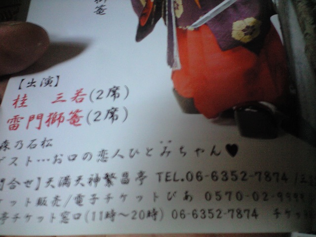 本日 お江戸上野広小路亭のゲスト出演の券(チケット)