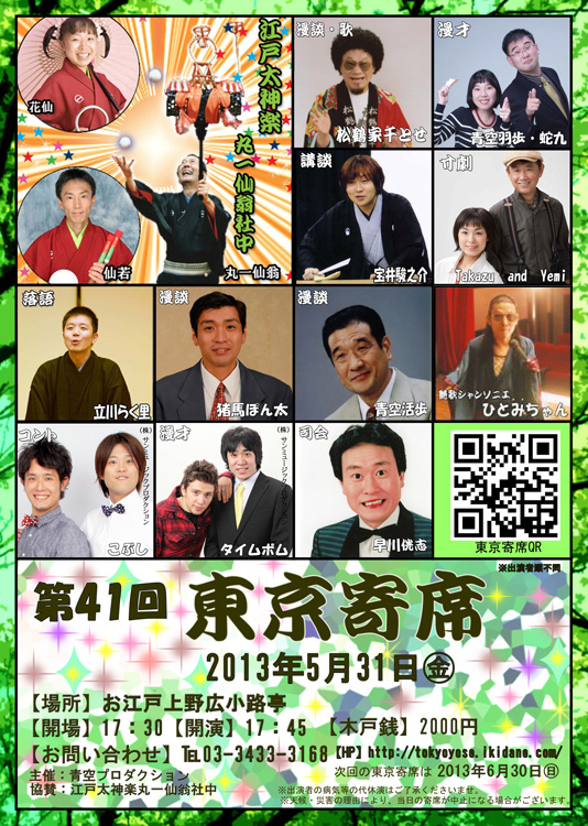 出演:、講談、落語、漫談、漫才、寸劇、艶歌シャンソニエ家元有〜盛沢山!是非‼