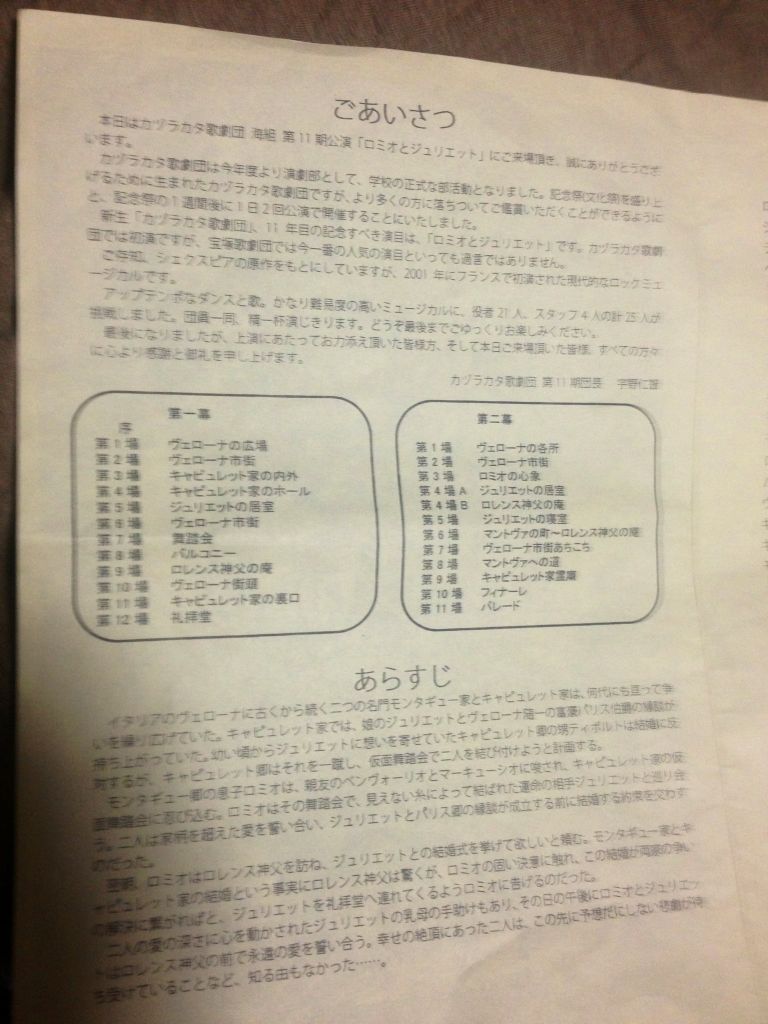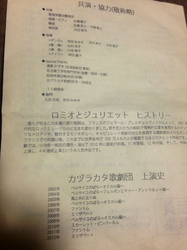 東海高校「カヅラカタ歌劇団 」海組第11期公演「ロミオとジュリエット」観劇してきた。