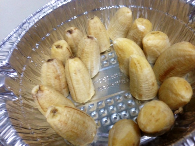 残り半分分バナナをぶつ切りにして。いつものように冷凍庫にむき出しに掘り込んでいた。