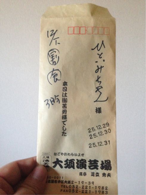 今年最後のギャラ袋=足立席亭大須演芸場最後の12月下席ギャラ袋ってコトだ。