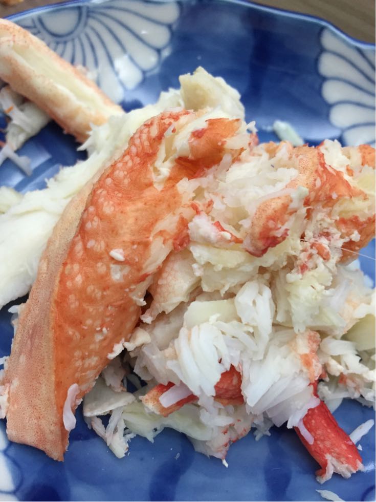 写真の様に あらかじめ、カニ身を剥きりほじく山盛にしてから喰らうのです!其れまでは人質時代の竹千代君ばしに耐え難きを、耐えるのです!