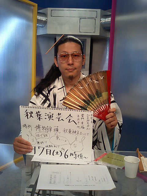 いや〜、家元探しましたよ。秋葉神社(分りにくいっす)騒がしく・機材の調子の悪い中でのお仕事ご苦労様でした。あんな(最悪!)中でも一生懸命の家元や幸福さん、カッコ良かったですよ。
