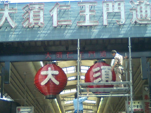 ちょうちんを塗り替えしているのに遭遇~。