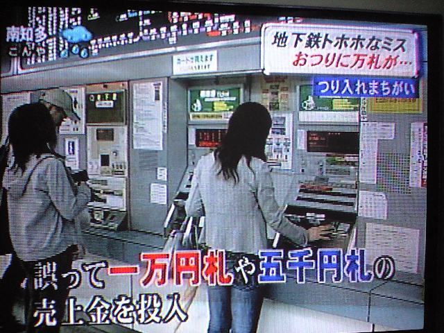 地下鉄久屋通駅の自動券売機の千円おつりの所に