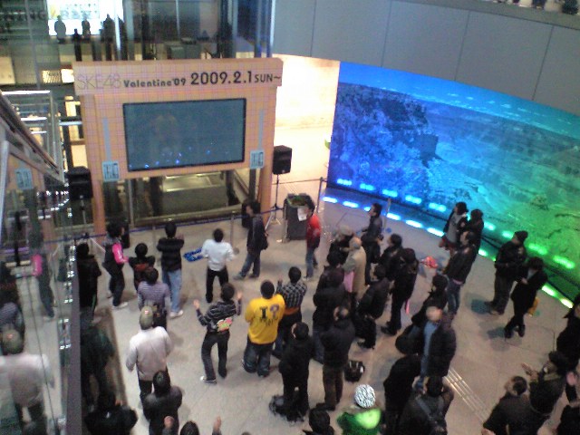 会場に入りきれなくてぇ、ライブ中継してる大画面に向かって叫んでるのだ?