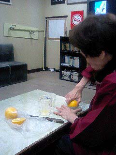 奥様が国産無農薬的レモンでレモネードを振る舞ってくれるの図