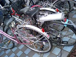 エンジンタンクを無理矢理積んだママチャリ